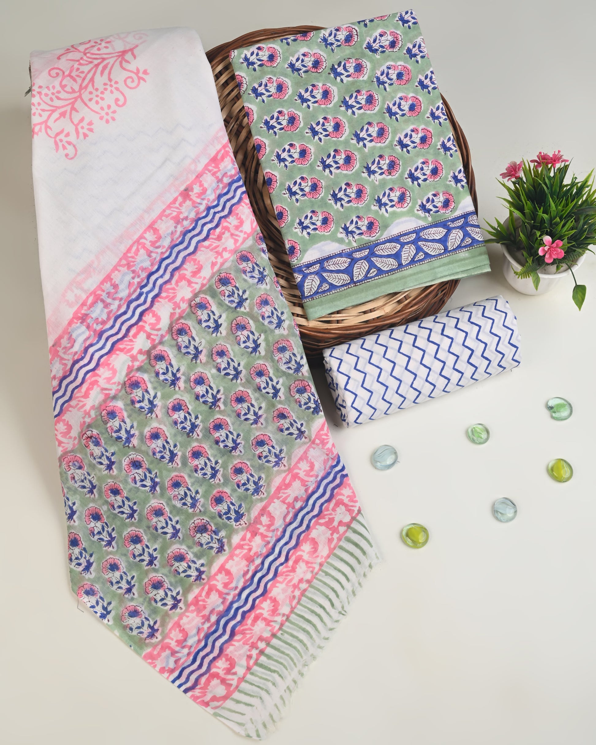 A Beautiful Cotton Suit With Cotton Dupatta In Sanganeri Hand Block Print For . This Dress Material is soft, lightweight fabric ensures ease of movement, making it perfect for casual outings , festive occasions and Official Wear. Sanganeri Handblock print make This suit set both traditional or fashionable