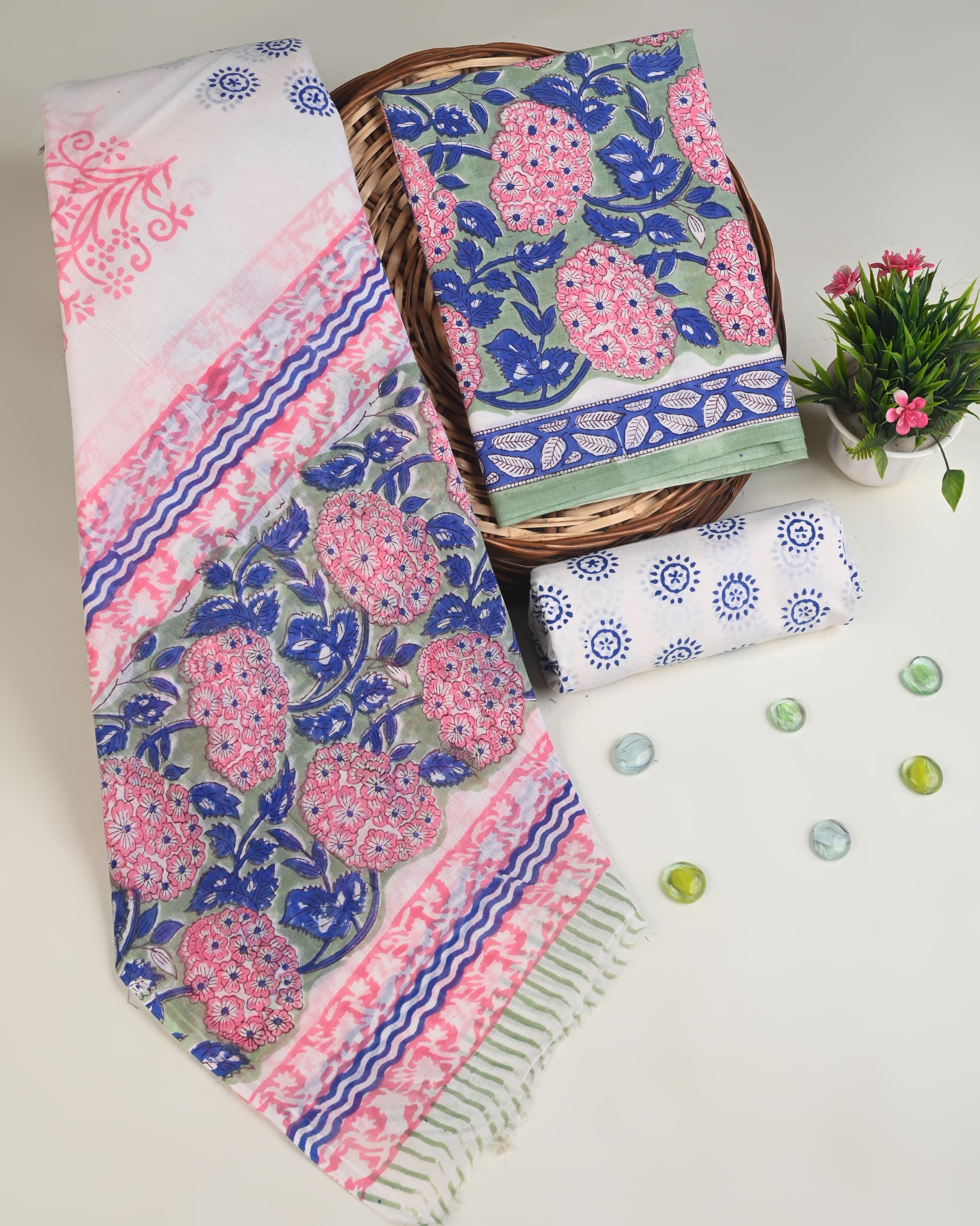 A Beautiful Cotton Suit With Cotton Dupatta In Sanganeri Hand Block Print For . This Dress Material is soft, lightweight fabric ensures ease of movement, making it perfect for casual outings , festive occasions and Official Wear. Sanganeri Handblock print make This suit set both traditional or fashionable